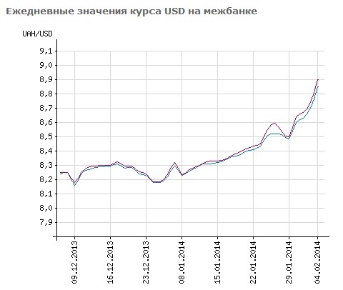 Курс доллара к украинской валюте, который во вторник вырос до 8,90, к вечеру среды уже поднялся до 9,05. В ходе сегодняшних торгов на межбанке стоимость доллара достигала 9,4 гривны. Стоимость украинской валюты по отношению к евро снизилась на 20 копеек – до 12,23 в продаже.