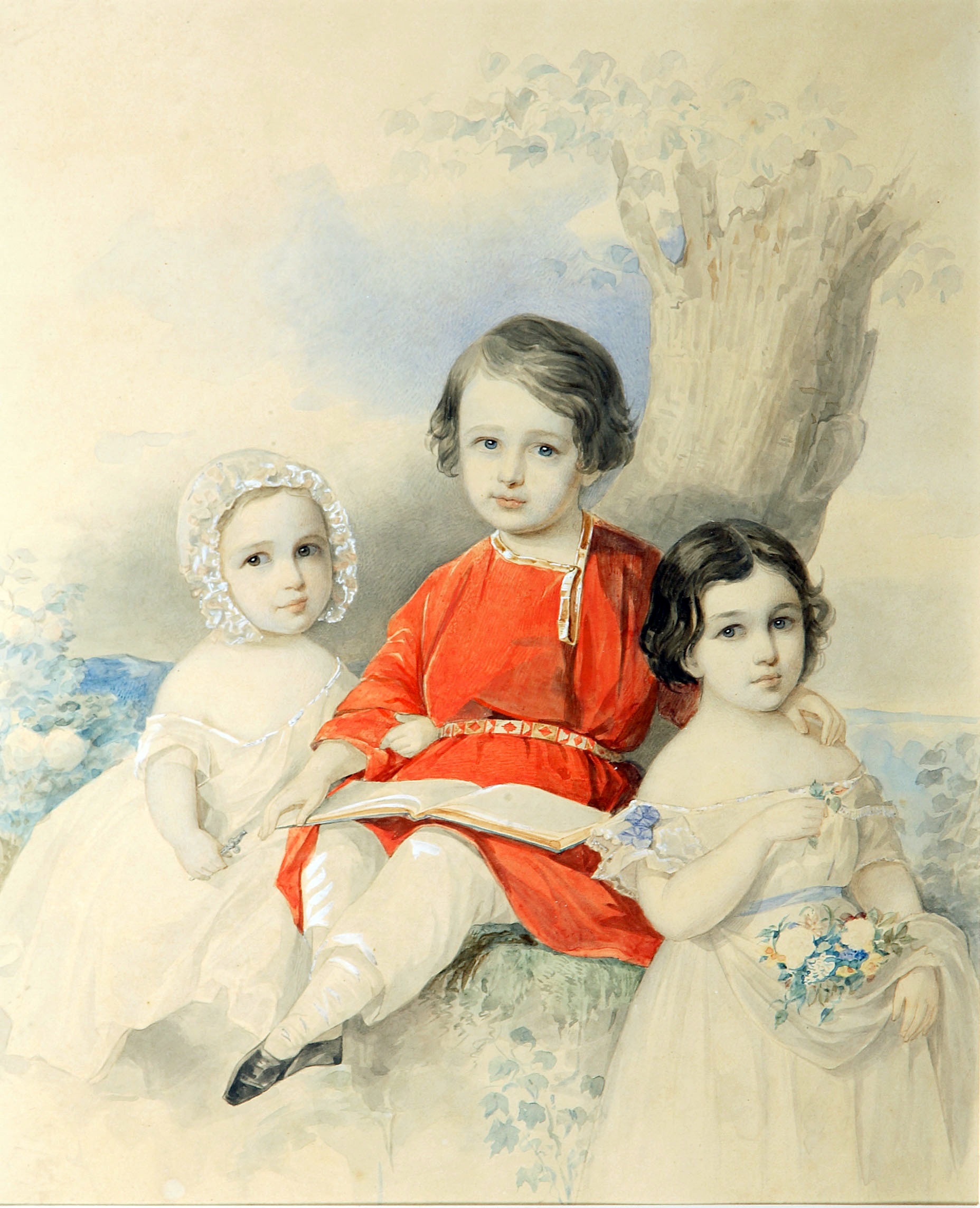 Гау В.И. Групповой портрет детей в пейзаже. 1840-1850-е
