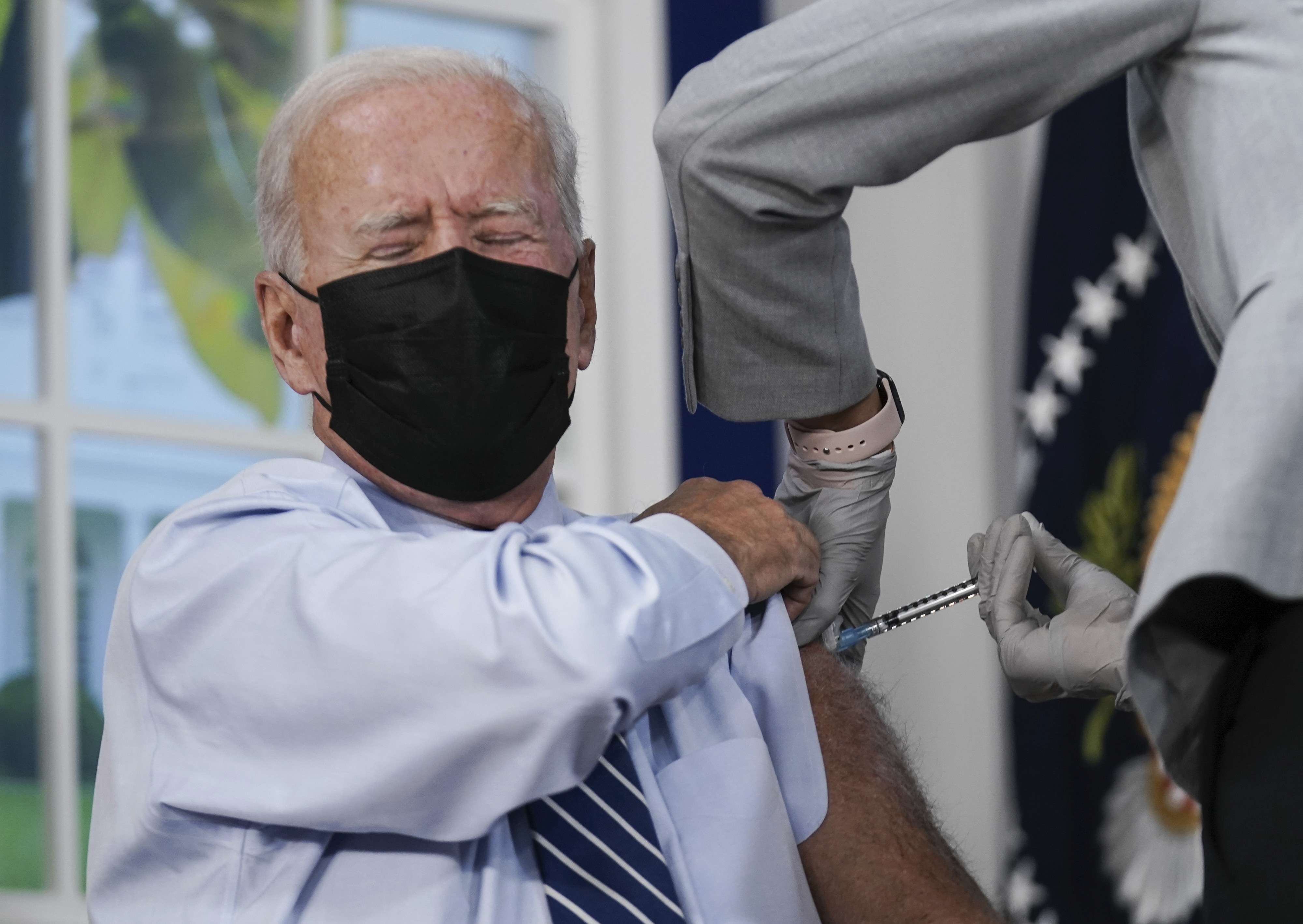 Президент США Джо Байден вакцинируется от ковида. 27 сентября 2021 года. Фото: Ken Cedeno / Consolidated News Photos / Global Look Press
