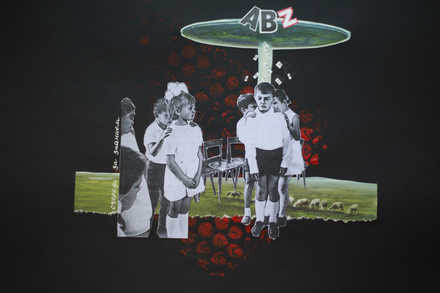 Вооружившись семейным архивом и актуальными газетами, Александра Михайлова сложила коллажи, созвучные ощущению текущей ситуации, а также поговорила с людьми внутри системы образования, чтобы понять, что происходит с ними сейчас: удается ли им найти смысл в работе и какими получаются занятия в условиях цензуры и контроля, как педагоги бюджетных учреждений решают для себя этические дилеммы и что планируют делать дальше, а также — почему учителям (и родителям детей) важно знать свои права и отстаивать их.