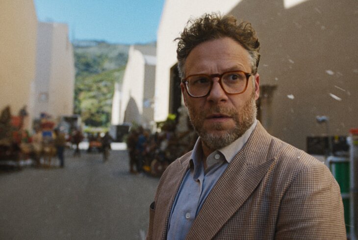 Сбылась мечта: лет двадцать оттрубивший заместителем на вымышленной, но все же довольно крупной голливудской студии Continental Мэтт Ремик (Сет Роген) из исполнительного продюсера сделался главой производства. Какой восторг! Теперь, кажется, можно больше не заниматься этими адскими, опостылевшими всем франшизами, на которых Ремик крайне эффективно заработал для студии несколько миллиардов долларов, и дать дорогу, что называется, настоящему кино. Потешить самолюбие, воплотить мечты. Ведь Мэтт — настоящий синефил: он любит, когда его режиссеры снимают на пленку, но готов соврать кому угодно — лишь бы выделить бюджет с пятью нулями Мартину Скорсезе… Хотя было бы неплохо еще, чтобы мэтр скрестил свой эпический замысел с рекламой растворимого лимонада. Тогда и президент Continental Гриффин Милл — с редким сарказмом сыгранный Брайаном Крэнстоном — был бы доволен. Ведь Мэтт так хорошо понимает, из чего состоит хорошее кино. Все знает, но — как собака — сказать почти ничего никому не может. Он патологически боязлив, трепещет не только перед уважаемыми классиками, но даже и в своем собственном отделе маркетинга. Смущен со всеми — особенно когда речь заходит о Шарлиз Терон (тут, впрочем, можно понять). Чуть что — Мэтт прыгает в свой коллекционный суперкар с открытым верхом и ходу — пересматривать криптоклассику рубежа 1980–1990-х (например, «Манекена» или «Летнюю школу»).