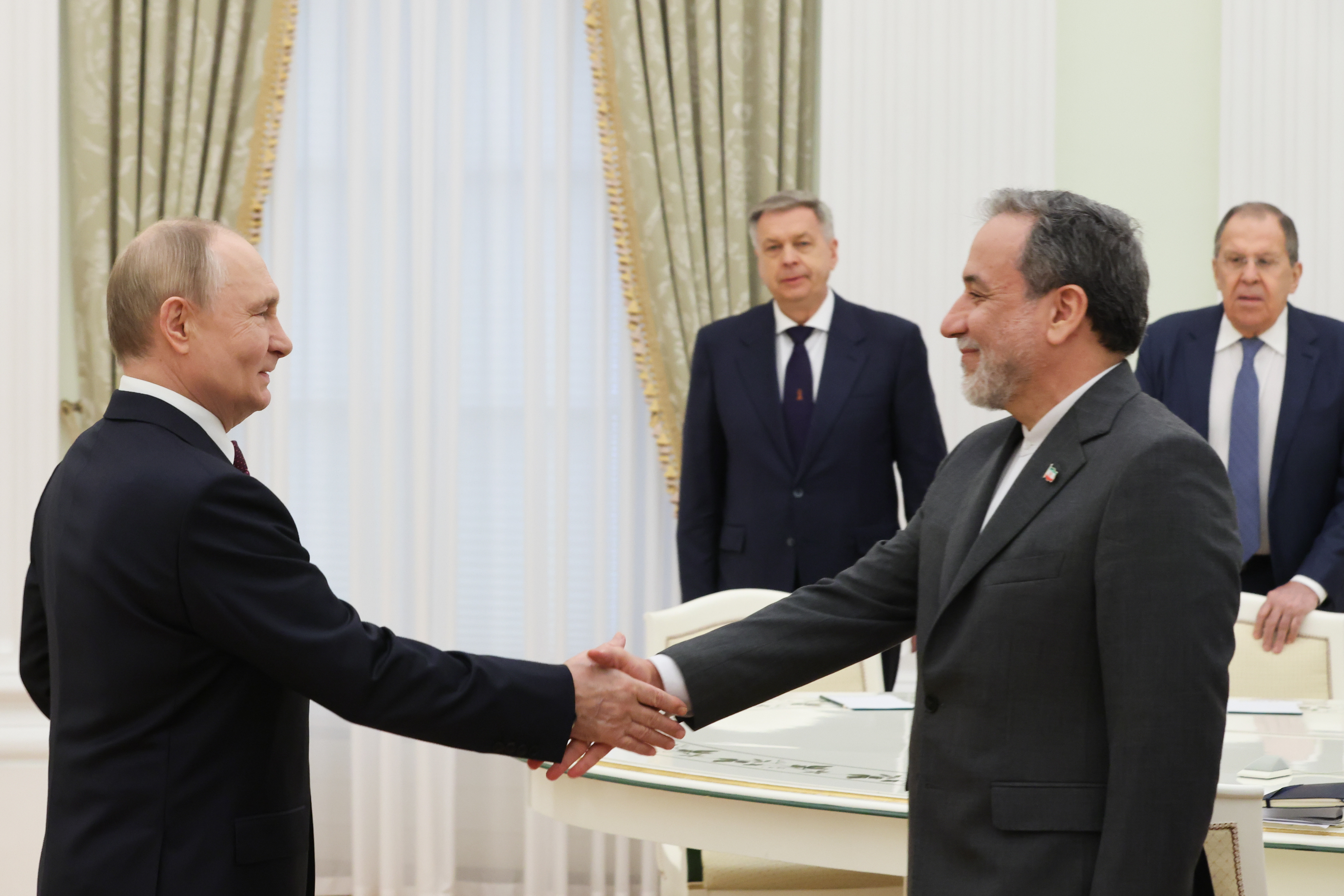 Президент России Владимир Путин и министр иностранных дел Ирана Аббас Аракчи на встрече в Кремле