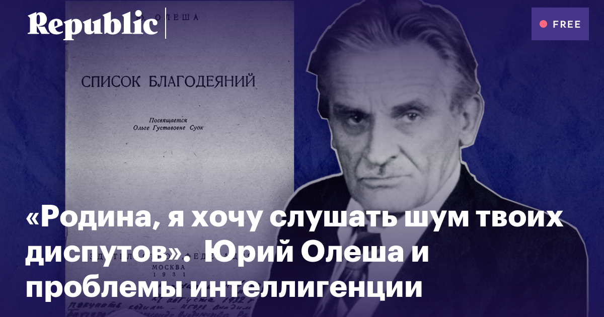 В 1930 году, через три года после публикации романа «Зависть» (русская «Википедия» сообщает, что это «произведение, рассказывающее о драме интеллигента, который оказывается „лишним человеком» в Советской России», и так оно и есть) Юрий Олеша написал пьесу «Список благодеяний».