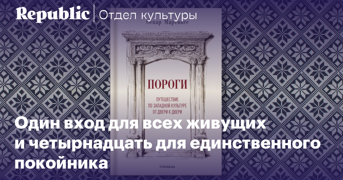 В издательстве «Синдбад» вышла книга «Пороги», где двери, проходы, пороги и запоры превращены в героев культурной истории. Оскар Мартинес пишет о том, какой особый смысл вкладывался в эти архитектурные элементы и какое символическое значение придавали люди входам в свои жилища и строения. Почему в Древнем Риме двери были открыты днем? Чем отличается монастырская келья от камеры заключенного? Зачем фараону нужно было 14 дверей в пирамиде и во что категорически не верили древние египтяне? С разрешения издательства публикуем главу книги «Погребальный комплекс фараона Джосера» о первой в мире пирамиде.