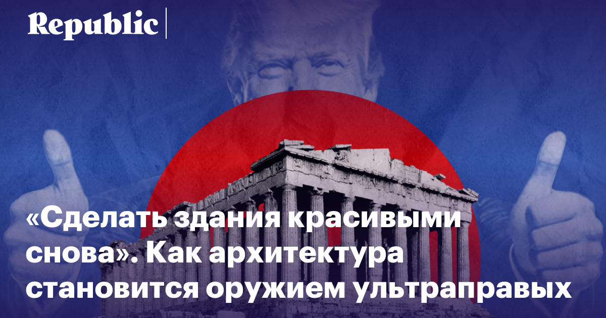 Ностальгия — неизменный спутник праворадикального дискурса. В начале XX века немецкие националисты ругали урбанизацию и пропагандировали жизнь на природе. Современные немецкие ультраправые ругают Баухаус. Сторонники Трампа выступают за классическое искусство, против авангарда и даже сформулировали лозунг «Сделать федеральные здания красивыми снова». Есть и другие примеры. Но, может быть, такое внимание государства к архитектуре — это даже хорошо? Или все-таки отсутствие свободы и вечный взгляд назад вредит архитектуре так же, как и всему остальному? Историк Василий Легейдо по просьбе Republic-Weekly разбирается в отношениях ультраправых и зодчих.