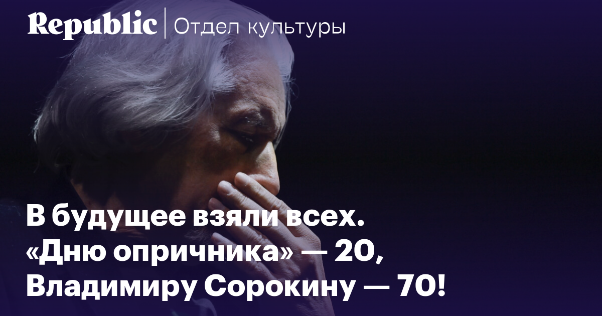 Главному российскому пророку, которого, как и положено настоящему пророку, в своем отечестве нет, — Владимиру Сорокину — 70. Издание Republic поздравляет писателя фундаментальной статьей профессора Колумбийского университета Марка Липовецкого. Опираясь на слова православного олигарха Константина Малофеева, философа Славоя Жижека и теоретика постмодерна Фредерика Джеймисона Липовецкий убедительно доказывает, что Сорокин ясно увидел все, что произошло с Россией, на 20 лет раньше, чем все остальные. Возможно ли, что он и наколдовал будущее, в котором мы оказались? Перечитываем «День опричника» 20 лет спустя — и празднуем юбилей Сорокина.