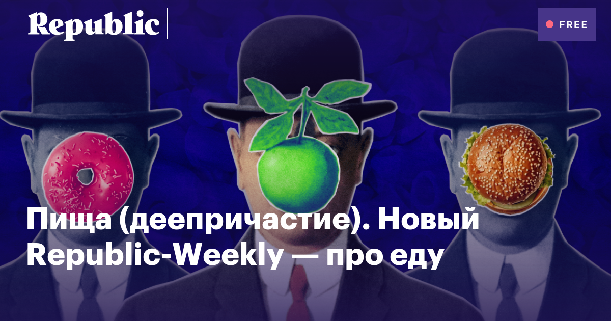 В общем, поговорим о еде в новом выпуске Republic-Weekly.