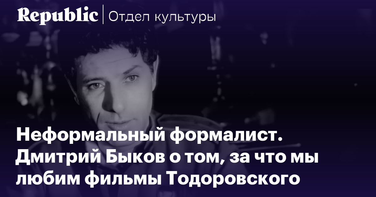 Сегодня Петру Ефимовичу Тодоровскому исполнилось бы 100 лет. Больше всего зрители знают и любят его за поздние картины — «Военно-полевой роман», который был номинирован на «Оскар», и «Интердевочку», ставшую символом перестроечного кино. Дмитрий Быков в юбилейном тексте обращает внимание прежде всего на ранние фильмы Тодоровского — от дебютного «Никогда» до «Городского романса», рассказывая о человеке и режиссере, который никогда не притворялся и всегда оставался собой.
