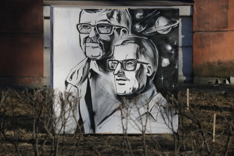 Граффити с портретами Аркадия и Бориса Стругацких. Фото: Антон Ваганов / ТАСС