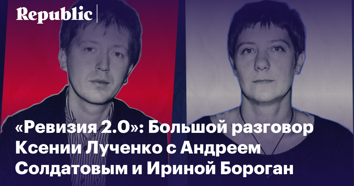 Ирина Бороган и Андрей Солдатов — журналисты-расследователи, которые специализируются на деятельности российских спецслужб (в минувшую пятницу Солдатова объявили в международный розыск по делу о «фейках»). Летом они опубликовали книгу «Наши дорогие друзья в Москве» — историю своей околожурналистской компании, из которой большинство теперь работают на российскую власть и обслуживают войну. Republic публикует большой разговор Ксении Лученко с Бороган и Солдатовым — это продолжение спецпроекта «Ревизия 2.0», посвященного журналистике во время войны.