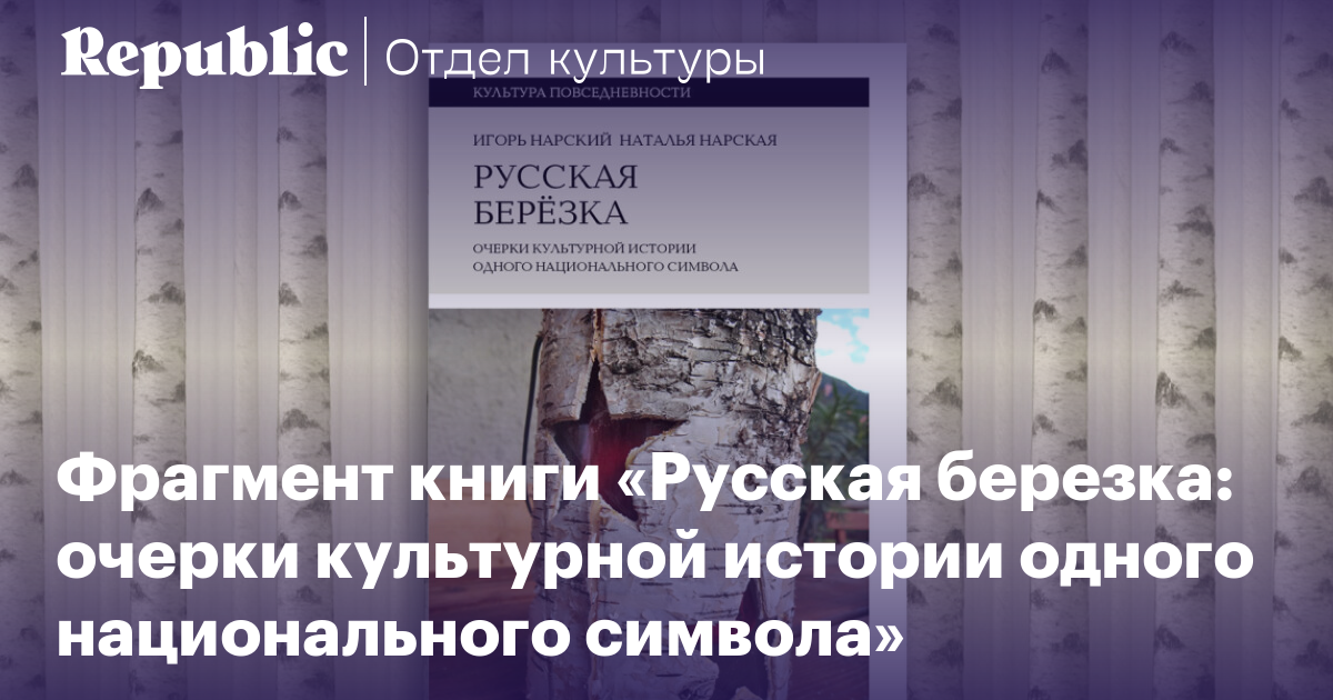 В серии «Культура повседневности» издательства НЛО вышла шестисотстраничная книга, полностью посвященная одному-единственному дереву — березе. Авторы — доктор исторических наук Игорь Нарский и кандидат социологических наук Наталья Нарская — выясняют, как так получилось, что в России она почитается как русское дерево, которое не растет за пределами страны? Почему стереотип о березе как излюбленном дереве для русских, подобно дубу для немцев, клену для канадцев и лавру для греков, к середине ХX века распространился чуть ли не по всей планеты? Почему образ «русской березы» представляется настолько естественным, архетипическим, что не нуждается в объяснении ни в массовой культуре, ни в науке? Книга состоит из пятнадцати очерков: в каждом из них авторы разбирают конкретный сюжет, связанный с культурной историей главного русского дерева — от старинных крестьянских песен и поэтизации березы в XIX веке до танцевального ансамбля и валютных магазинов в СССР.