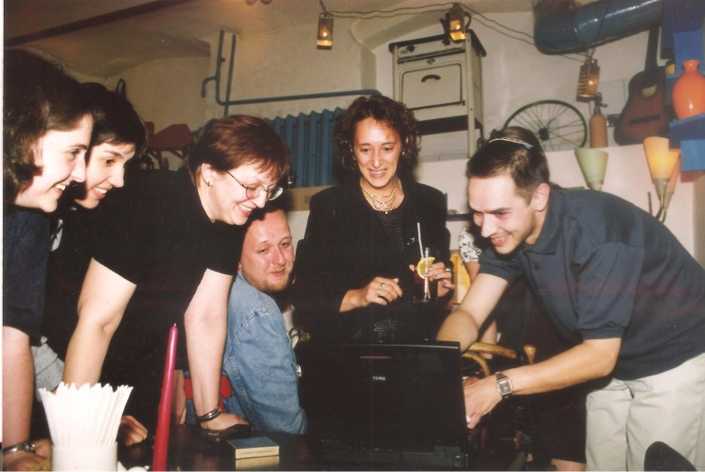 Шеф-редактор «Ленты.ру» Галина Тимченко, замгендиректора Юлия Миндер и главный редактор Антон Носик на дне рождения Носика 4 июля 2000 года
