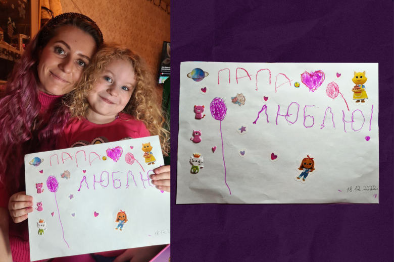 «Папа — котик-король, розовая кошечка сверху — мама, а посерединке — Варя. Она весь вечер старалась! Сначала на черновике, а потом на чистовике — как взрослая», — рассказывает Светлана, жена Алексея