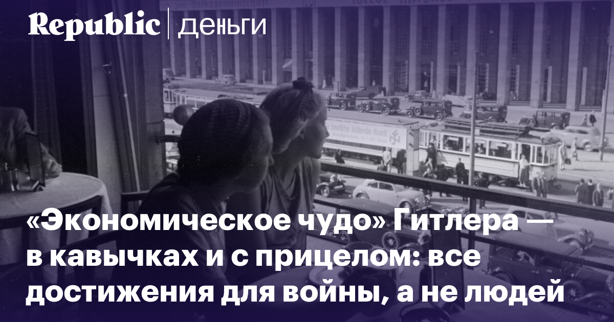 Republic продолжает серию материалов о том, как чувствуют себя экономики воюющих стран. Мы пытаемся понять, какие именно факторы приводят к падению или росту экономических показателей воюющего государства, поэтому решили обратиться к историческим примерам. И начнем с феномена бурного развития экономики Третьего рейха, которая с самого старта была поставлена исключительно на рельсы подготовки к большой войне.