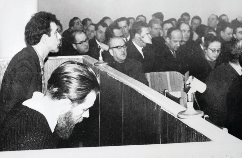 Андрей Синявский (на переднем плане) и Юлий Даниэль на скамье подсудимых. Москва, 10–14 февраля 1966 года
