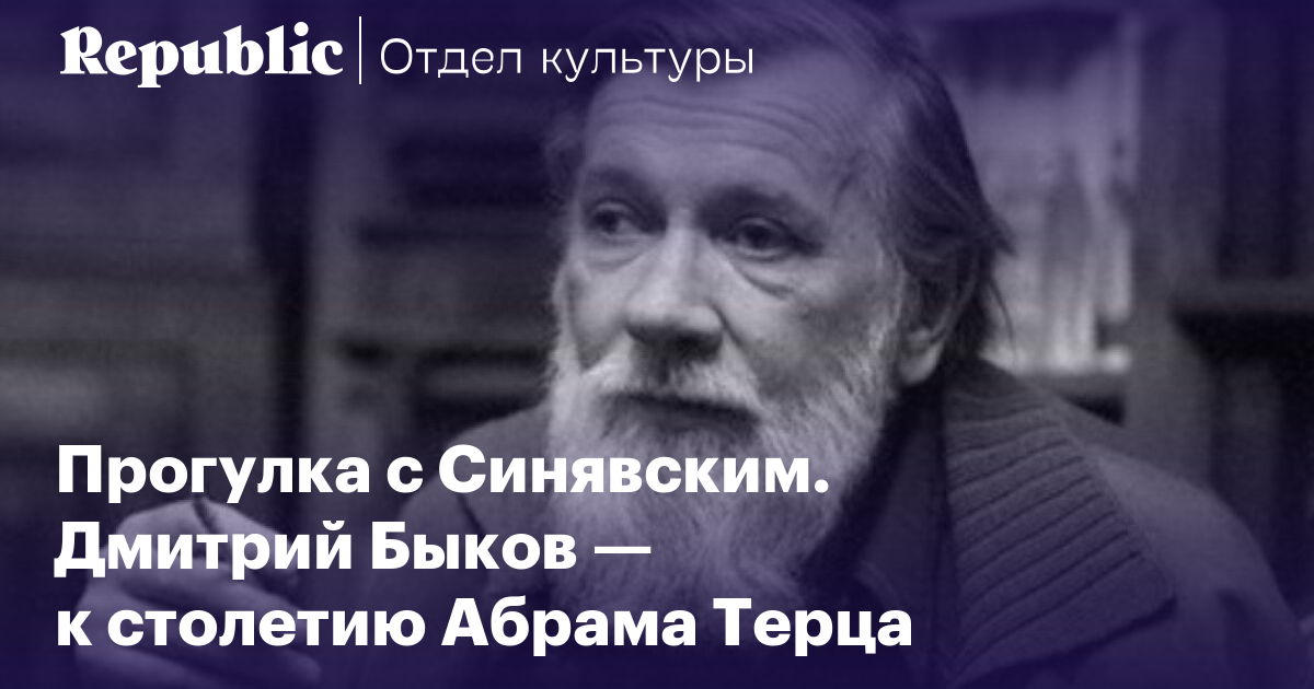 8 октября исполнилось бы 100 лет Андрею Синявскому — филологу, писателю, публиковавшему литературные произведения под псевдонимом Абрам Терц, диссиденту и политзаключенному, многолетнему редактору журнала «Синтаксис», который он издавал в Париже вместе с женой Марией Васильевной Розановой. Синявский — во всех смыслах уникальная фигура для русской литературы. В том числе потому, что был одним из немногих сторонников демократических сил, кто резко осудил расстрел парламента в 1993 году, а за год до своей смерти в 1996 году говорил, что Ельцин — это большее зло, чем коммунисты. О том, как понимать и зачем читать Андрея Синявского сегодня, специально для Republic рассказывает Дмитрий Быков.
