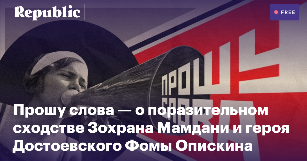 Типаж Зохрана Мамдани, кандидата в мэры Нью-Йорка, вывел Достоевский в повести «Село Степанчиково и его обитатели». Сходство заметил наш читатель Вадим Россман. В рубрике «Прошу слова» мы публикуем тексты подписчиков Republic. На этот раз аллюзия на русскую литературу из американской политики.