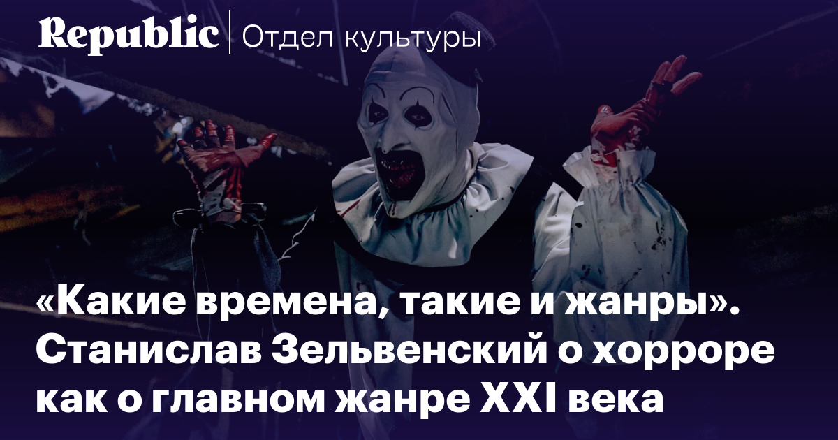 31 октября выходит книга «100 ужасов Станислава Зельвенского» — авторский путеводитель по хоррор-вселенной от одного из самых известных российских кинокритиков. В канун Дня Всех Святых Republic публикует большой разговор Константина Шавловского со Станиславом Зельвенским о том, почему в России нет хороших хорроров, как жанр захватили француженки и почему с миром, в котором «Ужасающий 3» обходит по сборам второго «Джокера», явно не все порядке. Бонус в финале беседы: рекомендации лучших ужастиков на Хеллоуин-2025 от Станислава Зельвенского.
