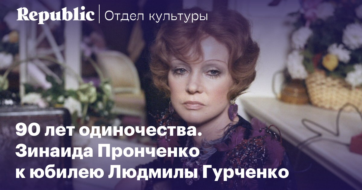 Сегодня Людмиле Марковне Гурченко исполнилось бы 90 лет. Публикуем колонку главреда Republic Зинаиды Пронченко о выдающейся актрисе, которая всю жизнь играла одиночество в толпе равных и неравных ей мужчин.