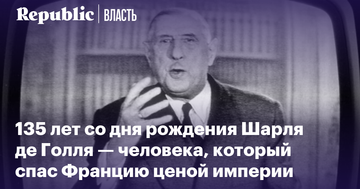 На этой неделе исполнилось 135 лет со дня рождения Шарля де Голля — человека, который спас Францию дважды: сначала от нацистов, потом от самой себя. Но ценой этого спасения стал Алжир. Генерал вывел страну из колониальной войны, не проиграв ее на поле боя, но проиграв в сердцах сотен тысяч людей, которых он оставил за пределами новой Франции.