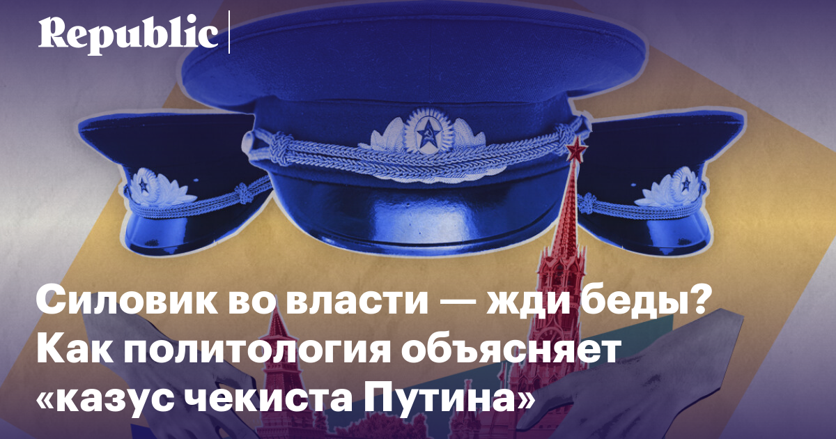 Правда ли, что еще в начале 2000-х будущее России было предопределено из-за чекистского прошлого Владимира Путина? Может ли человек из спецслужб стать демократическим лидером — или такие люди всегда строят Лубянку, какую бы должность они ни занимали? А что с военными: они могут эффективно управлять государствами? По просьбе Republic-Weekly политолог Клим Бакулин (псевдоним) с точки зрения науки и истории объясняет, чем плохи, а чем хороши силовики во власти.