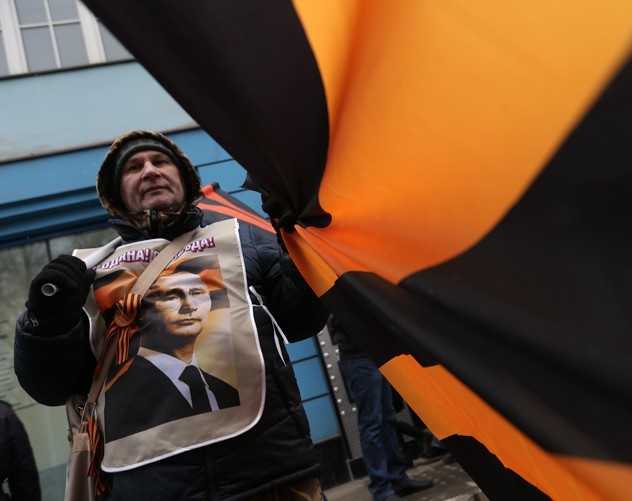 Любой лозунг проходил в толпе на ура: «Россия и Украина – едины», «Россия, свобода, Путин», «Майдан, Магадан», «Европу геть!». С какой стороны ни смотри – ужас и издевательство над здравым смыслом. А нет – единодушная поддержка, ритм фразы, громкие слова, единение, единство. «Крым наш, русский, Украина тоже Россия», «сейчас к ним руки тянут США», «эта война нужна Обаме», «фашисты», «бандеровцы», «наших бьют», «Путин молодец, что вмешался». Стандартный набор фраз из воскресных «Вестей», Дмитрий Киселев без веществ – просто, нет сердец геев и мести за Полтаву, но ясно и понятно.