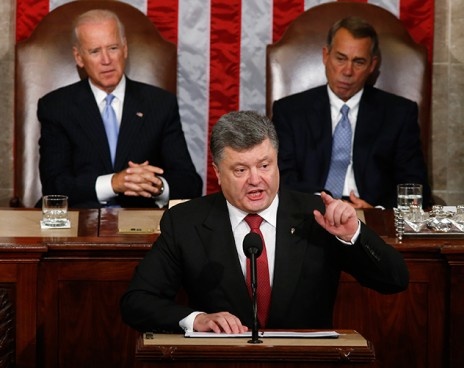 Президент Украины Петр Порошенко на совместном заседание Конгресса в Капитолии. Фото: Reuters / Kevin Lamarque
