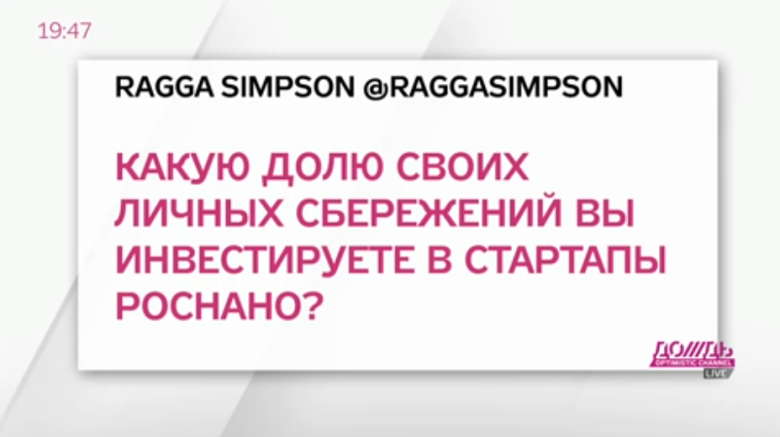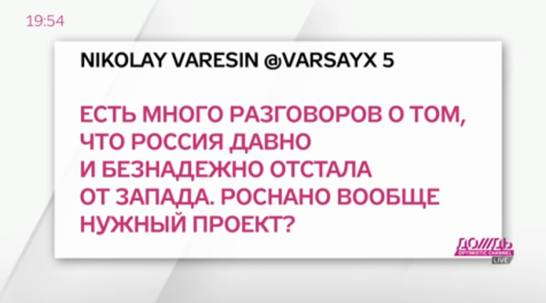 Ксения напоминает о том, что тема эфира – Роснано. И никаких других.