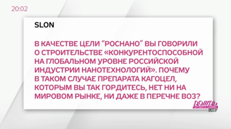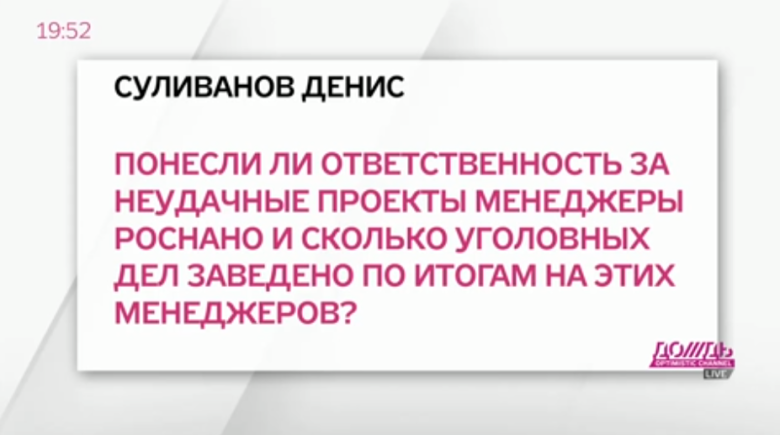 - «Вы плохо складывали плюсы и минусы» (напоминая о том, что по плану Роснано пока и должна быть убыточной)