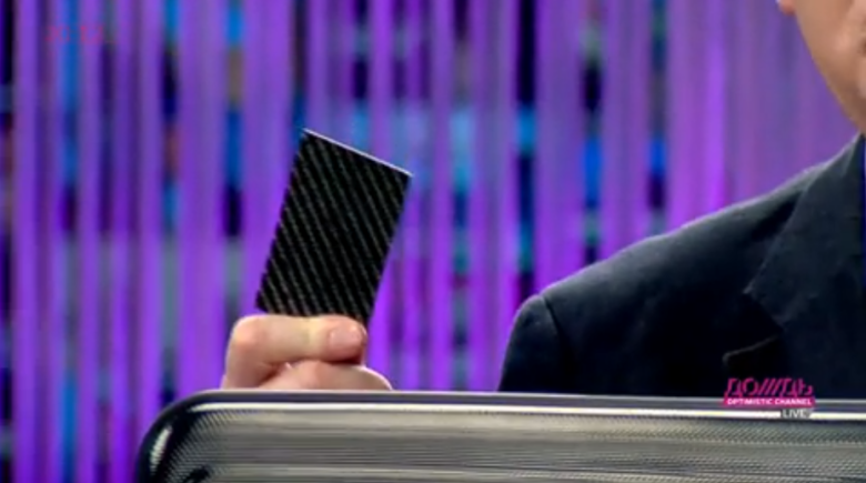 Чубайс показывает содержимое чемодана с нанотехногиями. Это, кажется, углепластик.