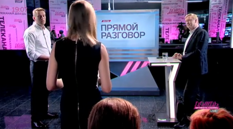 Ксения: «Я хочу чтобы зрителям тоже было интересно, потому что вы так между собой можете долго разговаривать». Навальный и Чубайс покивали и продолжили неинтересно.