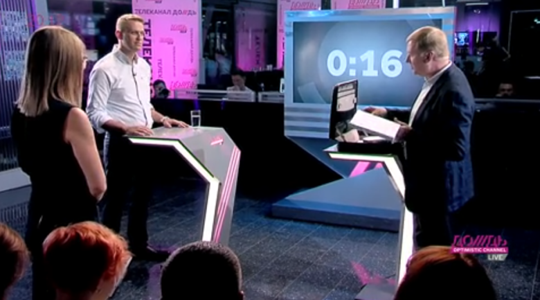 Судя по программе передач на «Дожде», схватка может продлиться часа полтора.