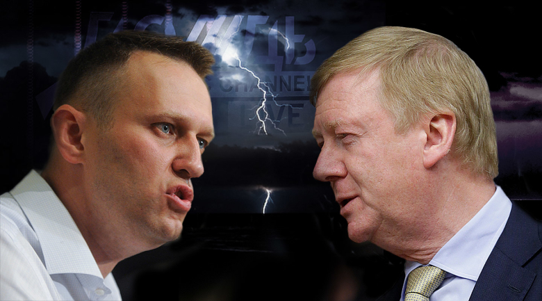 Навальный бросился в атаку. Чубайс, который старше его на 21 год, хитро щурится.