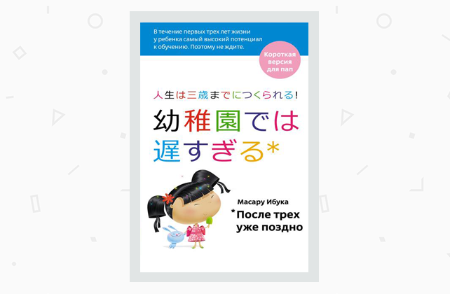 Японский инженер и предприниматель Масару Ибука известен не только своим участием в создании корпорации Sony. Он также предложил новаторскую для своего времени концепцию раннего воспитания и обучения детей, которую подробно описал в книге «После трех уже поздно».