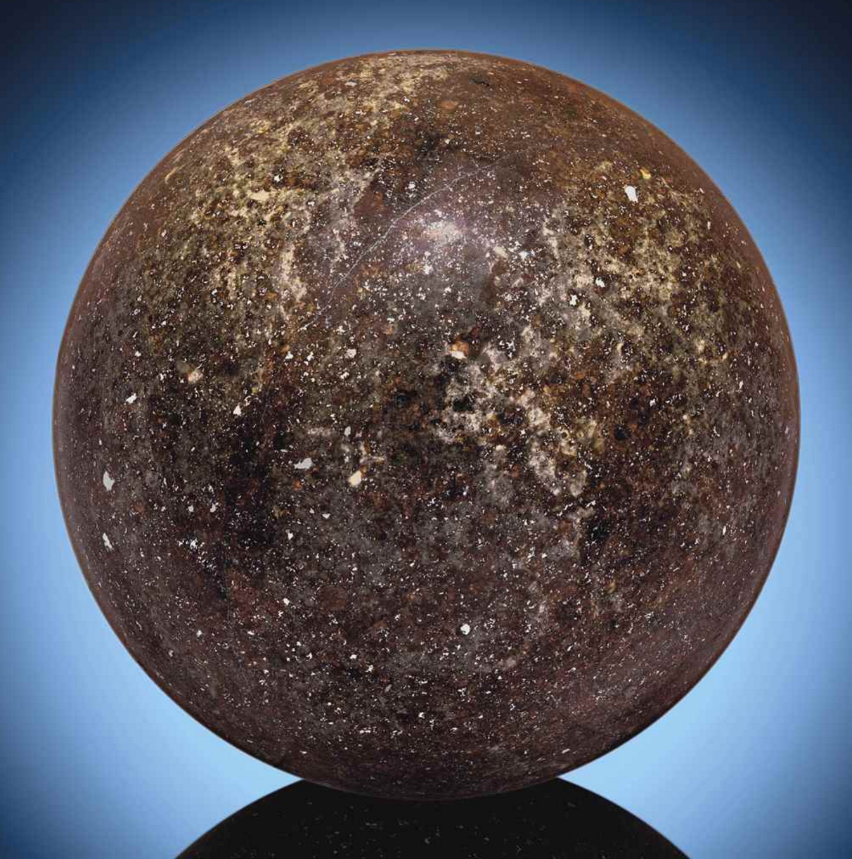 Каменный метеорит NWA 869, найденный в Сахаре близ границы Алжира и Марокко. Оценочная стоимость: $4269 – $7115. Упал на Землю с одним из крупнейших известных метеоритных дождей несколько столетий назад, впоследствии получил форму сферы. В составе NWA 869 есть как материалы, значительно перекристаллизованные вследствие нагрева, так и фрагменты, сохранившие первозданную текстуру и структуру.