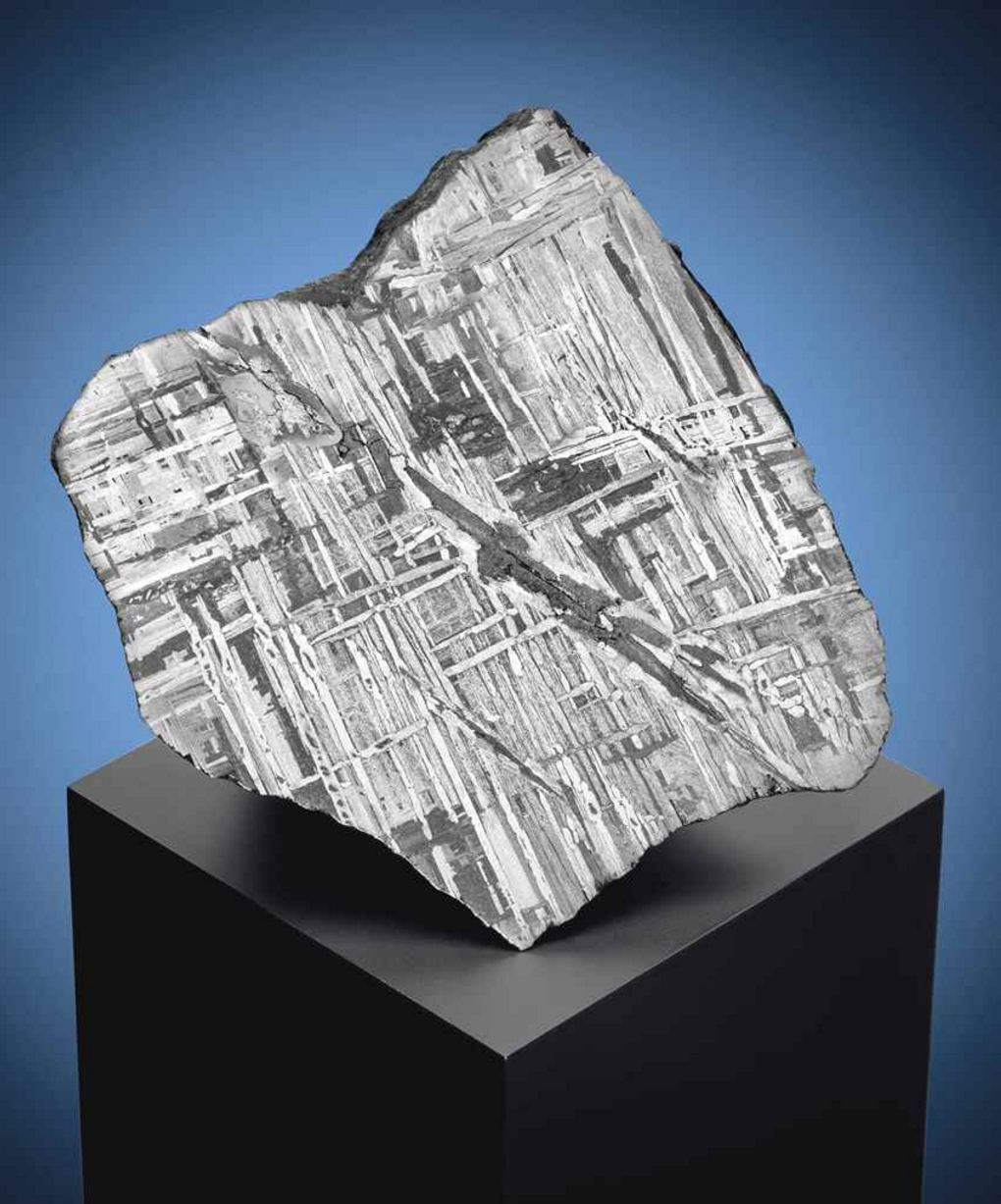 Железный метеорит Gibeon. Оценочная стоимость: $213 450 – $355 750; вес 81,4 кг. Упал в пустыне Калахари на территории Намибии несколько тысяч лет назад в составе метеоритного дождя, найден относительно недавно представителем местного племени.