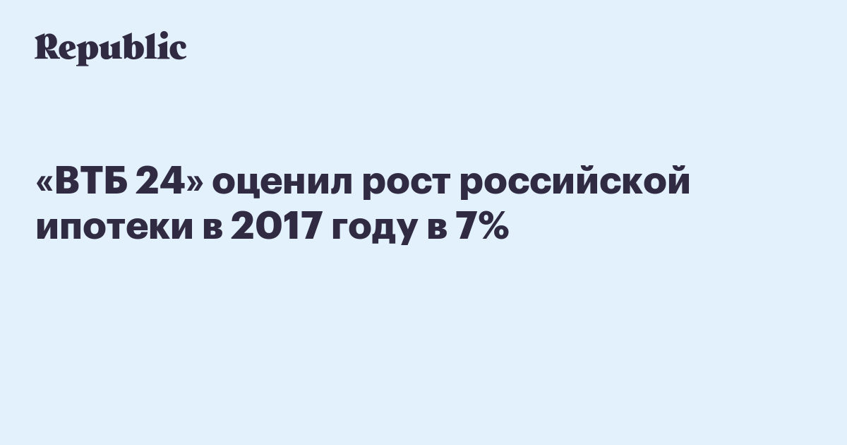 Выдача ипотечных кредитов в России в 2017 году увеличится на 7% по сравнению с предыдущим годом и превысит 1,59 трлн рублей. Такой прогноз сделали в банке «ВТБ 24» (розничной «дочке» ВТБ), передает «Прайм».