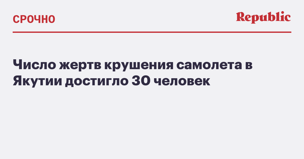 Число жертв крушения самолета Минобороны в Якутии достигло 30 человек. Об этом сообщает «Интерфакс» со ссылкой на источник в правоохранительных органах.