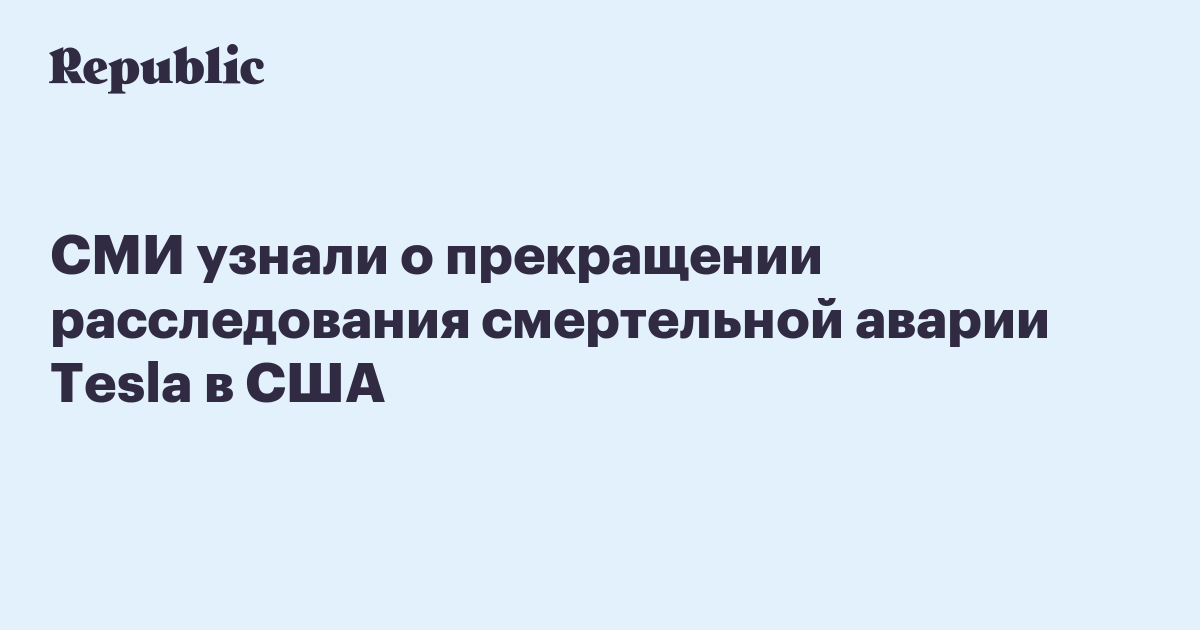 Национальное управление безопасности движения (NHTSA) США закроет расследование о первом в мире ДТП со смертельным исходом с участием беспилотного автомобиля Tesla. Об этом со ссылкой на источники сообщает Reuters.