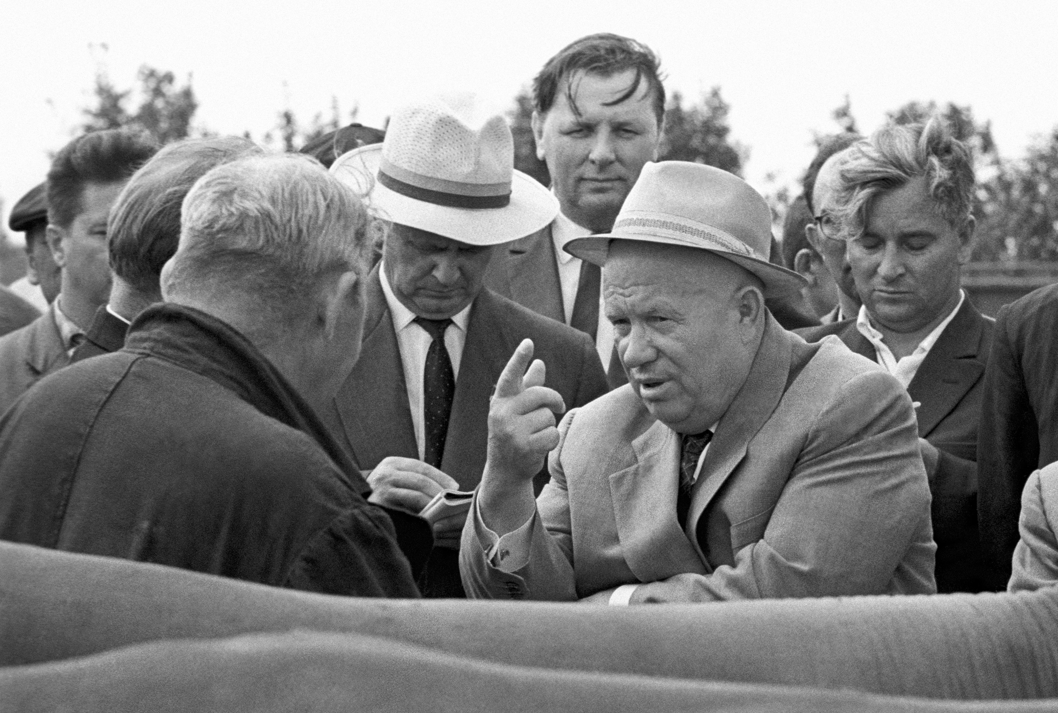 Глава советского правительства Никита Хрущев в колхозе «Россия», Волгоградская область. Фото: Валентин Соболев / ТАСС