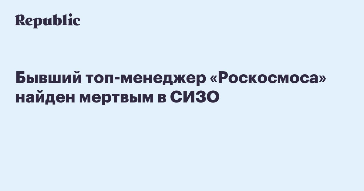 Бывший исполнительный директор по контролю и качеству «Роскосмоса» Владимир Евдокимов, ранее арестованный по обвинению в мошенничестве, найден мертвым в камере московского СИЗО №5. Об этом сообщает РИА Новости.