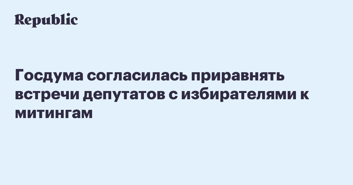 Госдума в первом чтении одобрила законопроект, который приравнивает к митингам встречи депутатов с избирателями. Прямая трансляция голосования велась на сайте нижней палаты парламента.