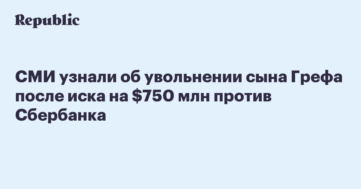 Сын президента Сбербанка Германа Грефа Олег ушел с руководящей должности в компании «НЭО Центр», которая фигурировала в иске на $750 млн, поданном против Сбербанка и его главы. Об этом сообщает «Прайм» со ссылкой на неназванные источники.