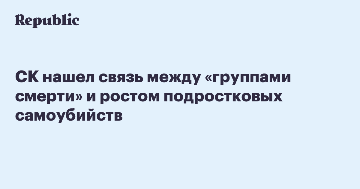 Резкий рост числа самоубийств среди подростков в России объясняется активизацией «групп смерти» в интернете. Об этом говорится в докладе по вопросам склонения несовершеннолетних к суицидальному поведению, подготовленному Следственным комитетом (СК). Документ оказался в распоряжении РБК; его подлинность подтвердил член научно-консультативного совета при СК Иван Соловьев.