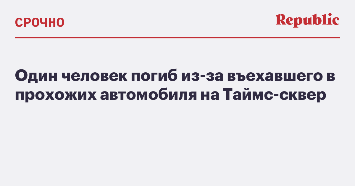 Как минимум один человек погиб из-за наезда автомобиля на прохожих на Таймс-сквер в Нью-Йорке, сообщает Reuters со ссылкой на свидетелей произошедшего. NBC также сообщает об одном погибшем.