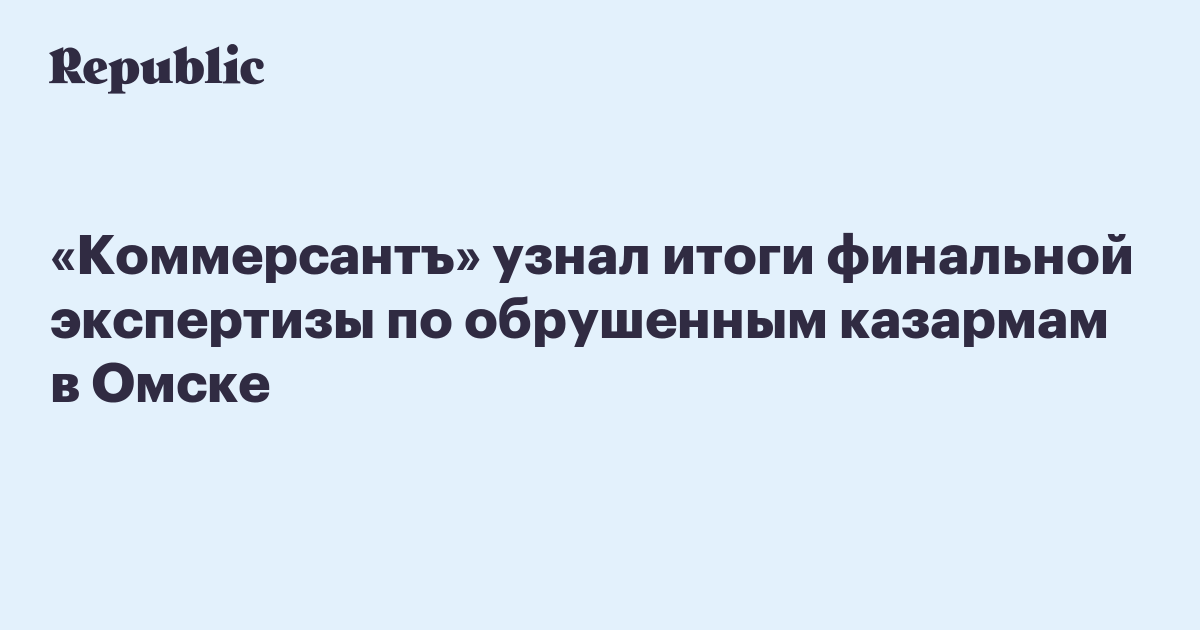 Следственный комитет РФ вместе с сотрудниками из Московского государственного строительного университета (МГСУ) провел финальную экспертизу по делу о крушении казармы в Омске. Об этом пишет газета «Коммерсантъ».