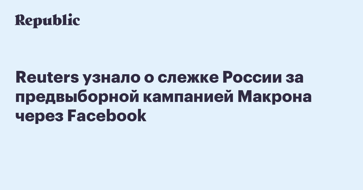Российская разведка следила за предвыборной кампанией нынешнего президента Франции Эммануэля Макрона с помощью социальной сети Facebook. Об этом сообщает Reuters со ссылкой на неназванного американского конгрессмена и еще два источника, знакомые с ситуацией.