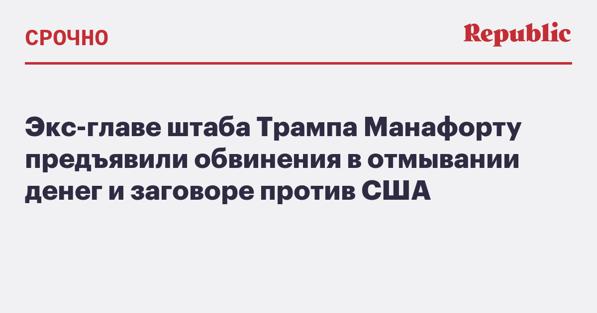 Бывшего главу избирательного штаба Дональда Трампа – Пола Манафорта – обязали сдаться властям в связи с обвинениями. Об этом пишет The New York Times.