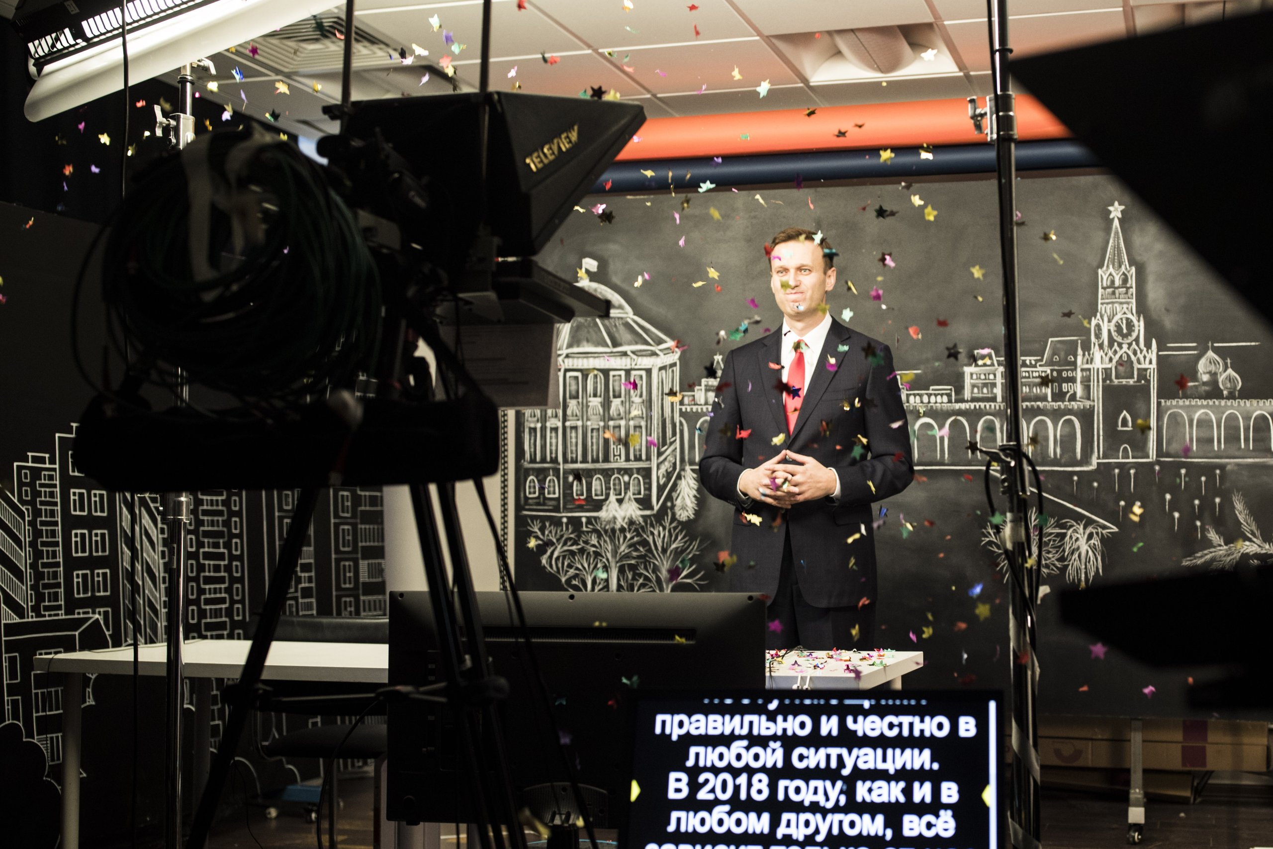 Запись новогоднего обращения Алексея Навального. Фото: Евгений Фельдман для кампании Навального