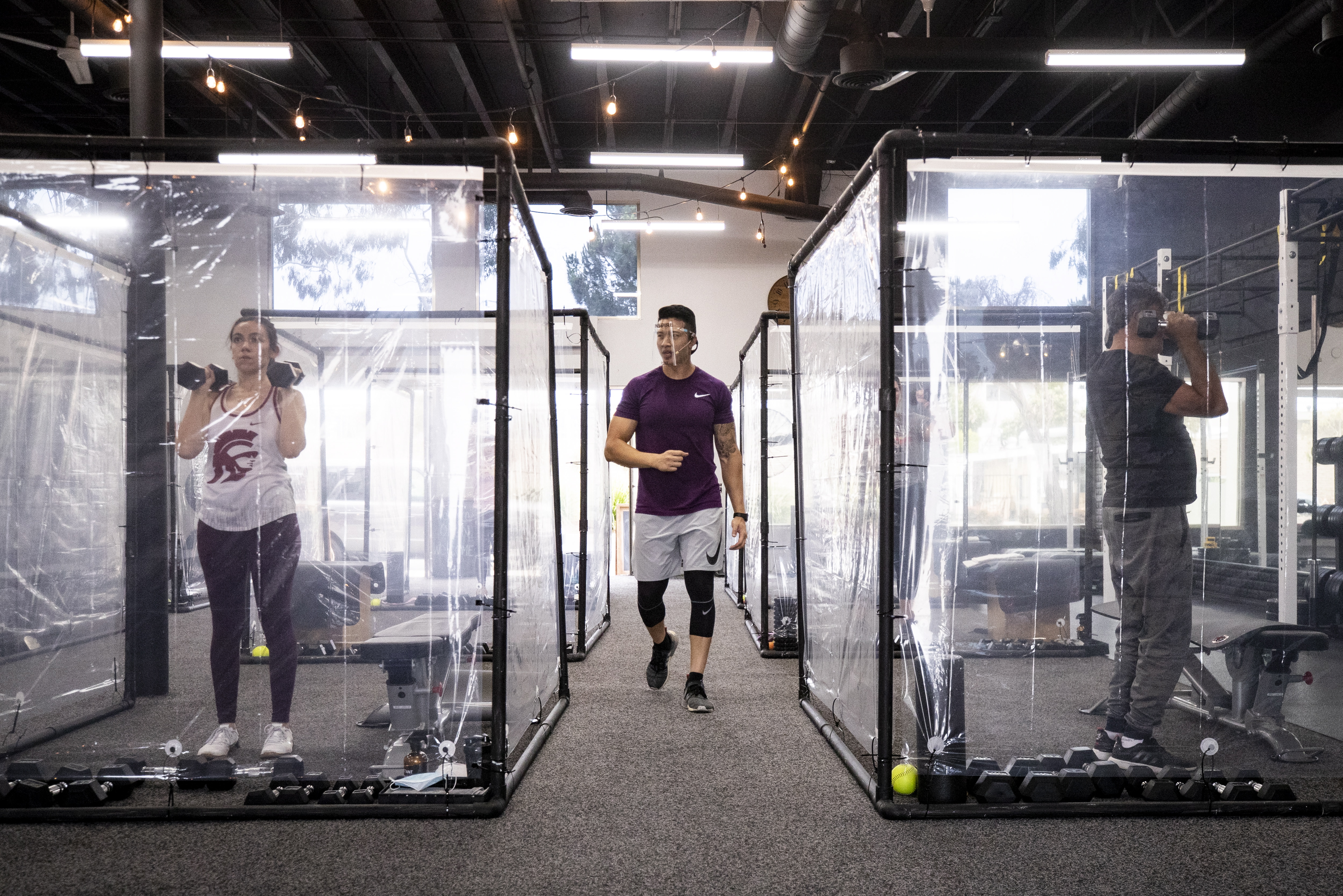 Занятия в фитнес-зале Inspire South Bay Fitness в Калифорнии. Фото: Etienne Laurent / EPA / TASS